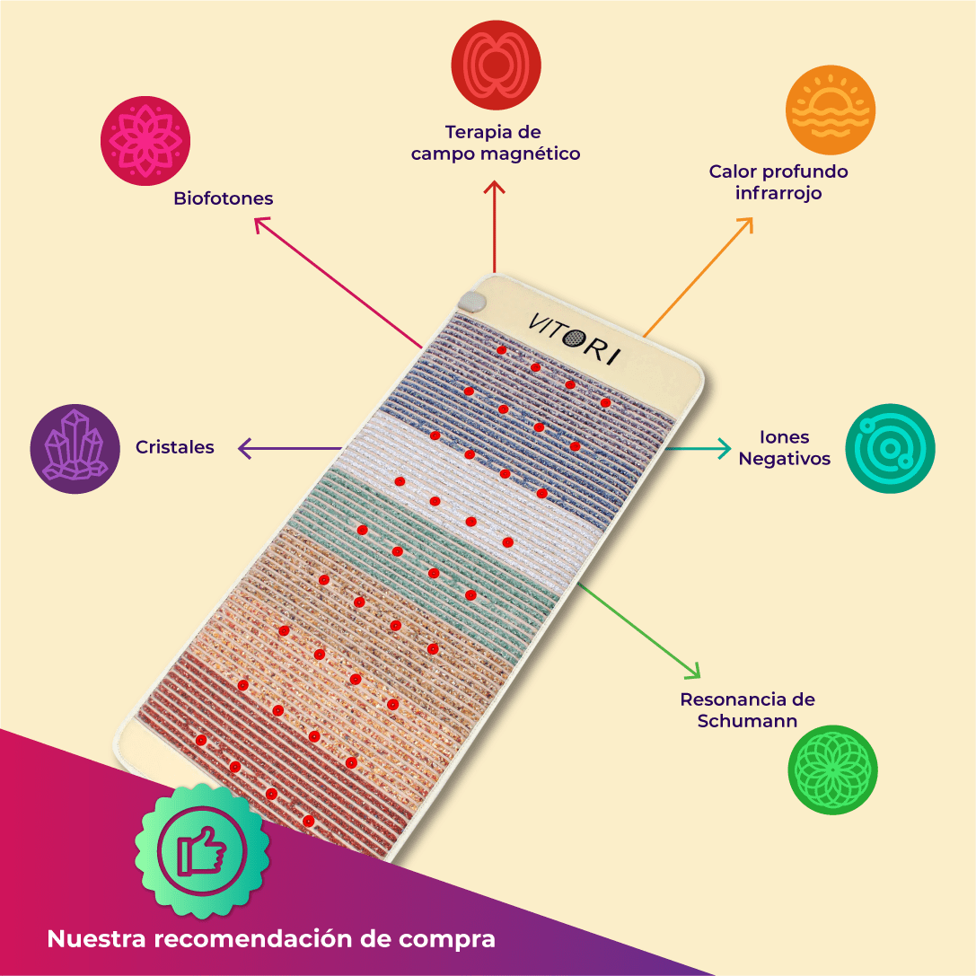 Hemos iniciado nuestra prueba propia con la esterilla de cristal premium de VITORI hace casi un año y, en consulta directa con otros clientes entusiastas, hemos notado los siguientes efectos en el cuerpo: